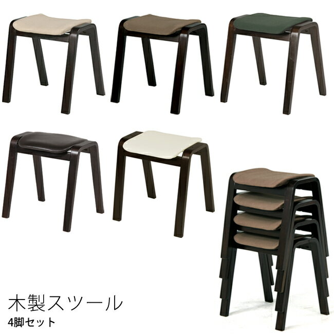 木製スツール [同色4脚セット] スタッキングスツール 布 PUレザー合皮スタッキングチェアー補助椅子 店舗待合室 木製チェアー
