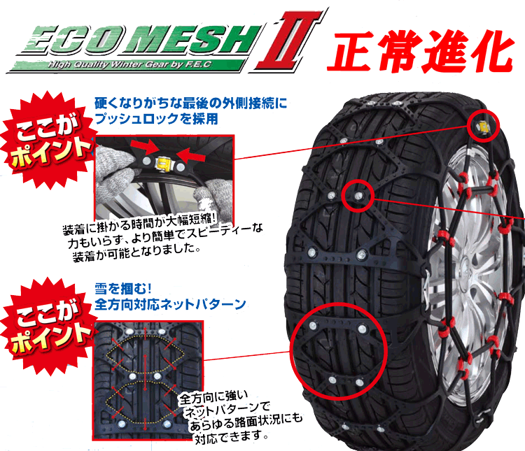 タイヤチェーン 非金属 FECチェーン エコメッシュ2 FB04 155/80R13(夏),165/70R13,165/65R14(夏),165/55R15(夏),165/50R16(夏) 等