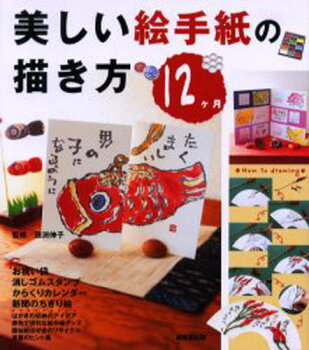美しい絵手紙の描き方12ヶ月 お祝い袋 消しゴムスタンプ からくりカレンダー 新聞のちぎり絵
